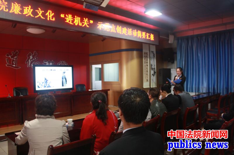 在汇报现场,以活动剪影的形式展现出廉政文化融入该院各项工作开展的情况,分为规划篇、教育篇、宣传篇、活动篇、作品篇、成效篇6个篇章,浓厚的廉政气息感染了在场的所有人,迎来一致好评。