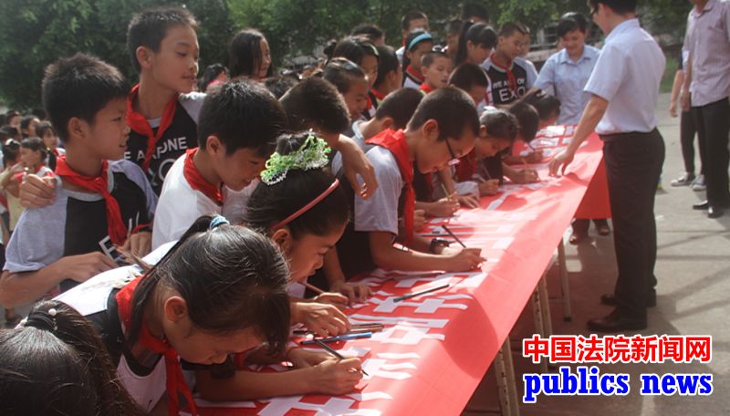 公众全民讯(王娇)为营造浓厚的禁毒宣传氛围,掀起禁毒宣传教育新高潮,不断提高少年儿童的禁毒意识和防毒拒毒能力,创建无毒校园,2015年6月25日下午,港口法院的法官们走进港口区第四小学开展了丰富多彩的“禁毒宣传进校园”活动。