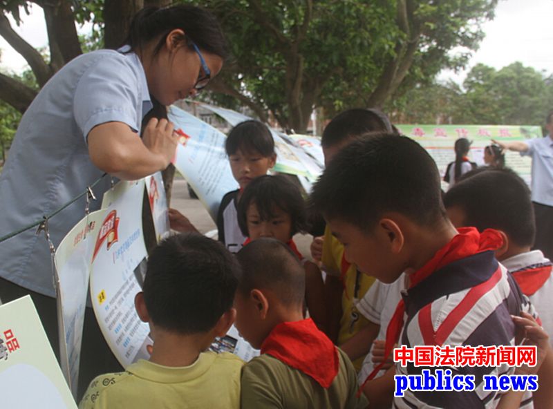 法官现场讲解禁毒板报。